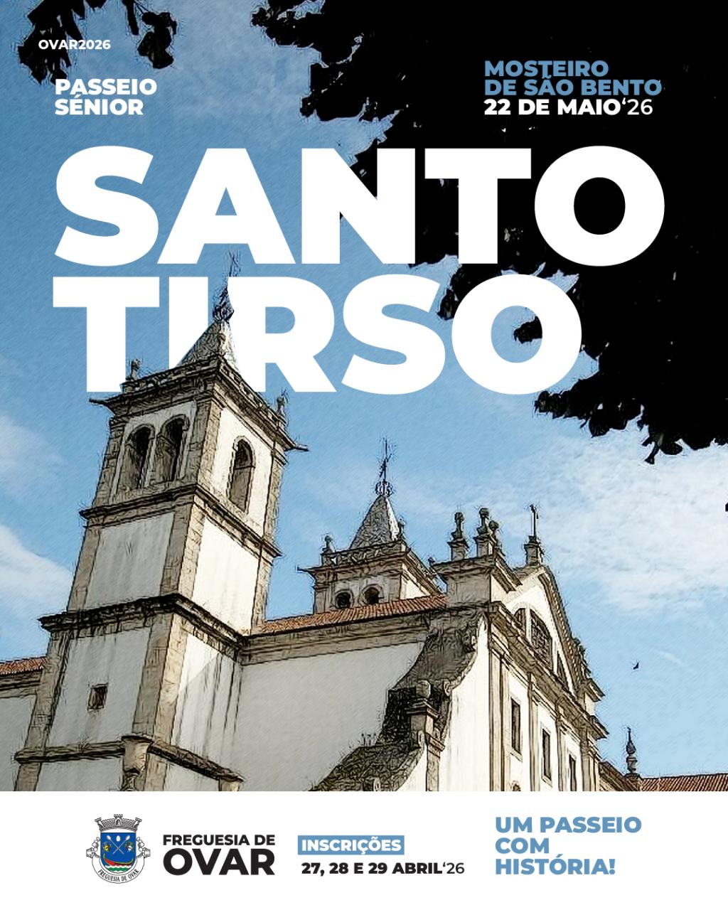 A Junta de Freguesia de Ovar promove mais uma edição do seu tradicional Passeio Sénior, desta vez com destino à histórica cidade de Santo Tirso. No dia 22 de maio, a freguesia ruma ao Mosteiro de São Bento para um dia de convívio e descoberta cultural.